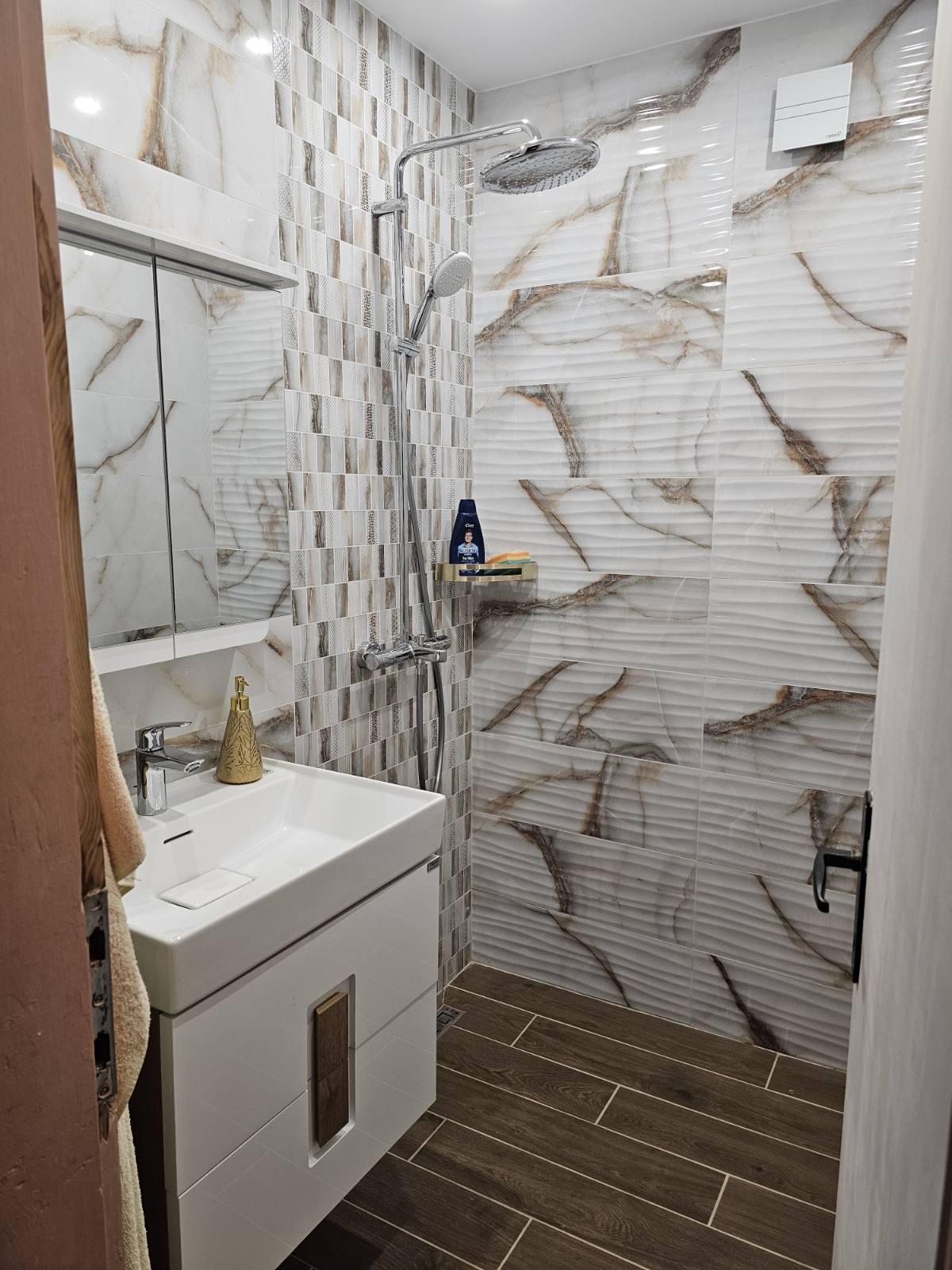 - Вградени конструкции – окачени тоалетни, ниши, душ-канали.