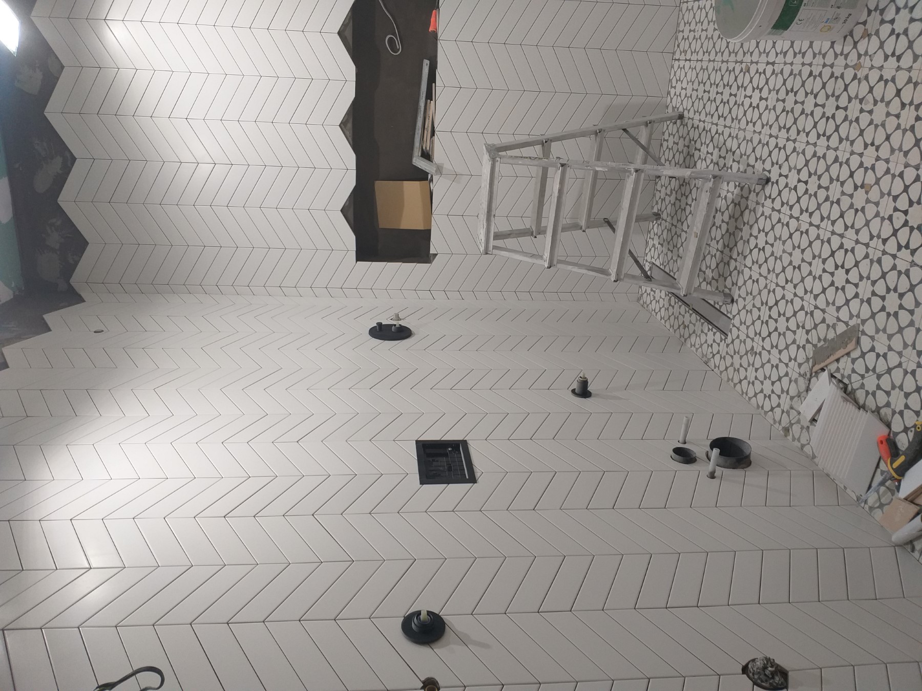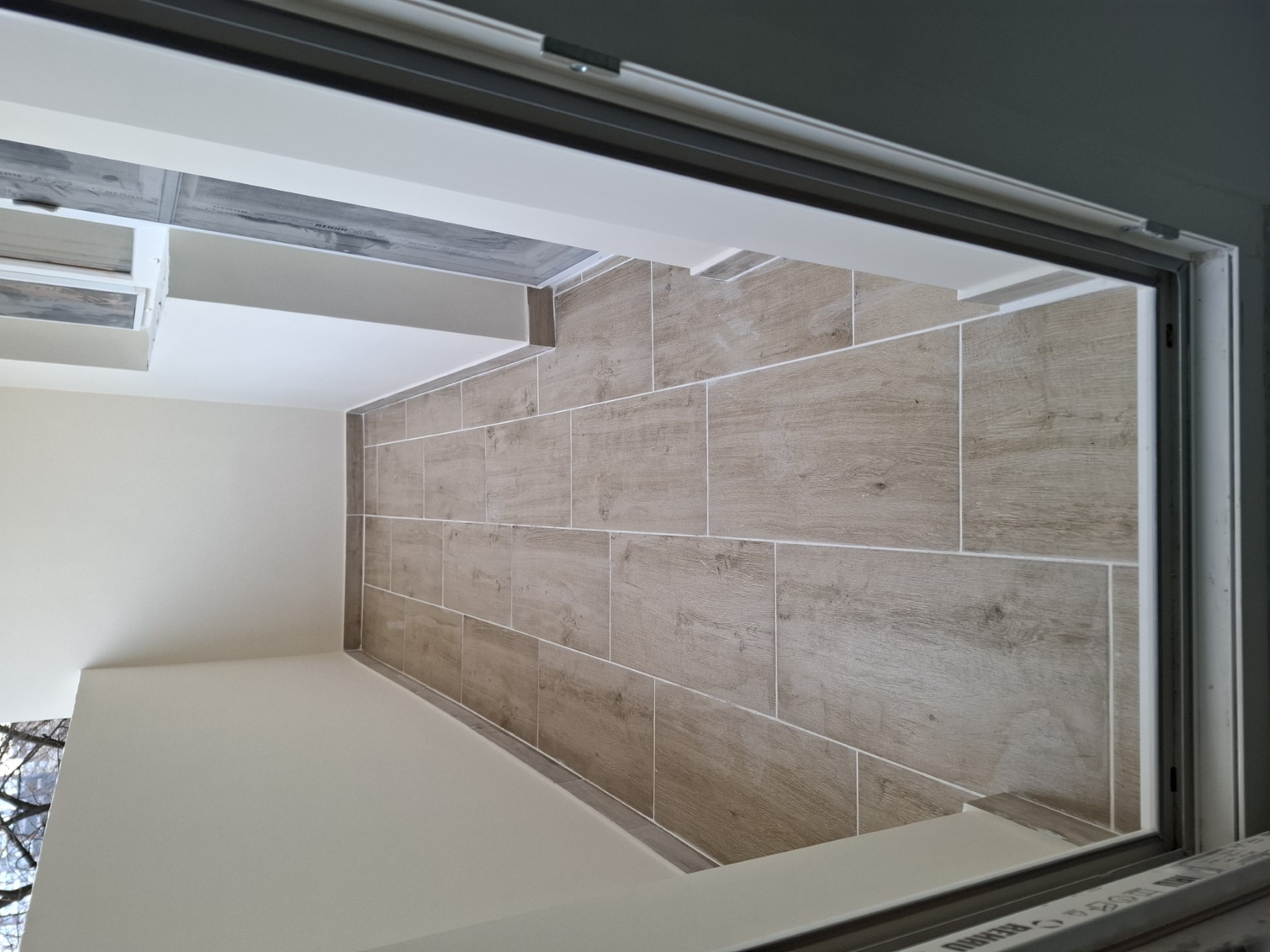 Полагане на изравнителна замазка, шумоизолация, подово отопление (ако е предвидено) и подготовка за плочки, ламинат или паркет.
